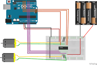 With a single L293D bridge and an Arduino we will be able to drive 2 DC motors independently of each other. If the power of your engines is low you can even use the 5V output of your arduino to power your DC motors.